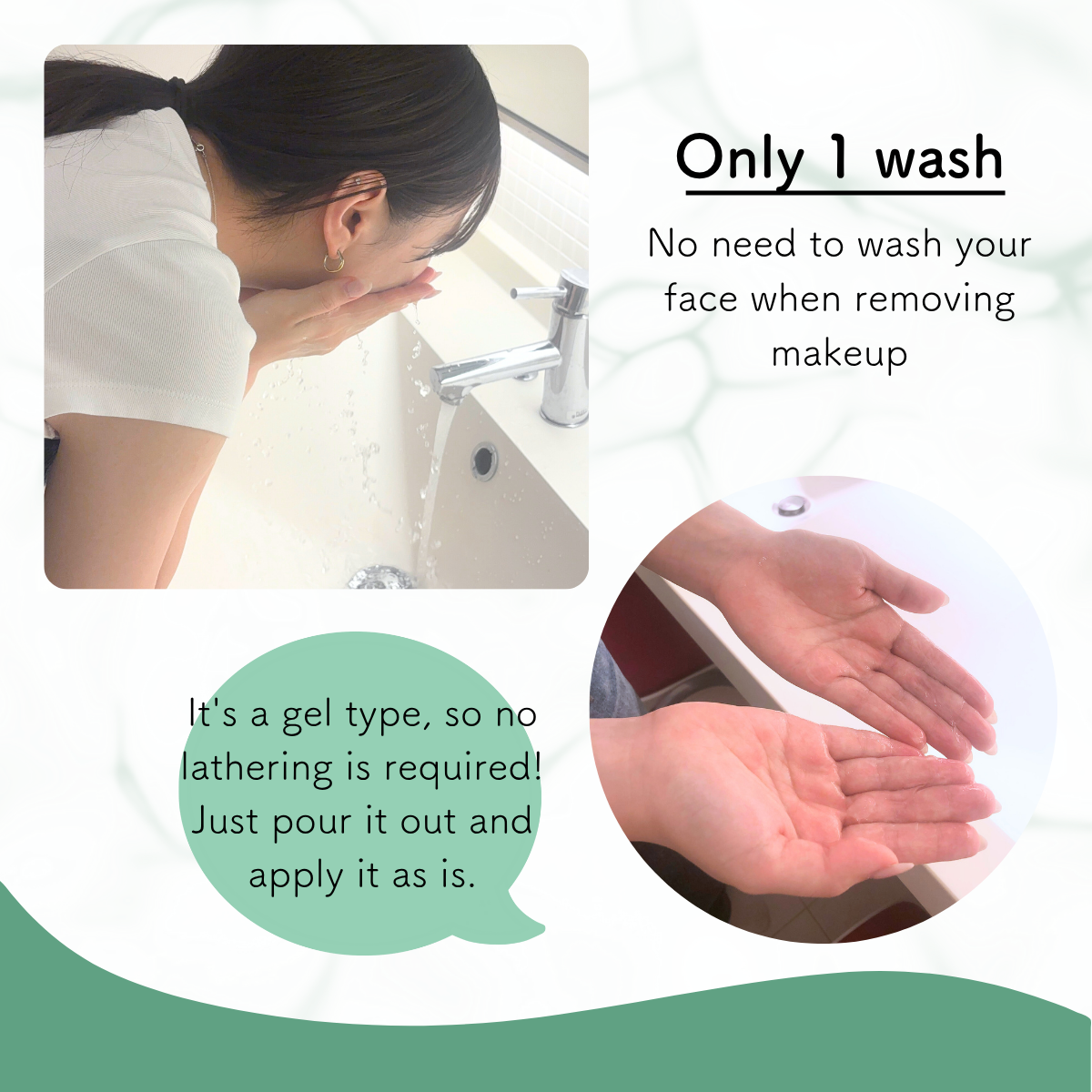 Effectively removes makeup while preserving the skin’s essential oils and keeping it hydrated. Therefore, it leaves your skin feeling soft and not tight after cleansing. By adjusting the amount used, this single product can serve as both a makeup remover and a facial cleanser. Since double cleansing is not necessary, it reduces irritation to the skin.
