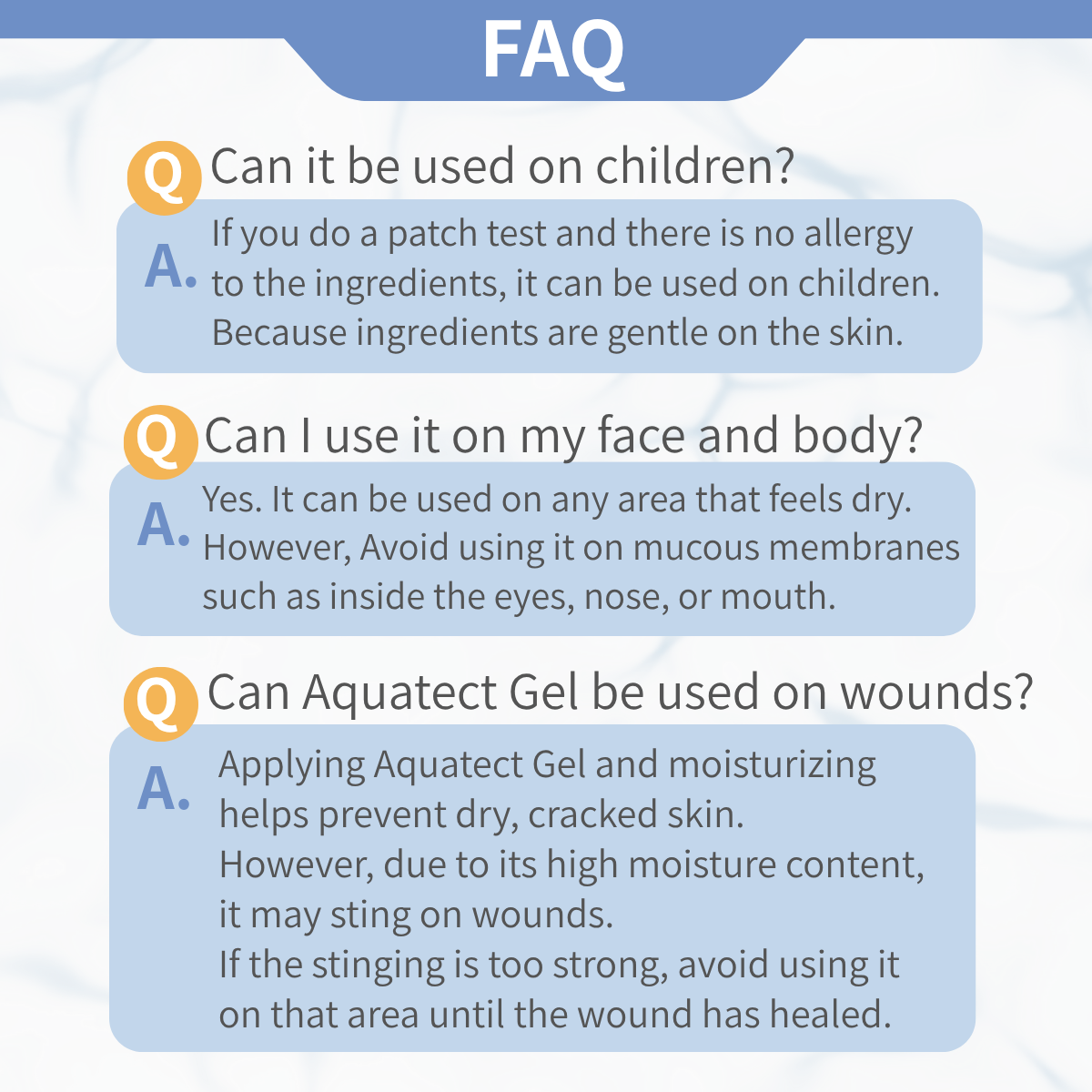 Aquatect gel can be applied on your body too! It has been verified to be effective for dryness of the hands and feet, so if you are concerned about dryness of the body, please try it out.