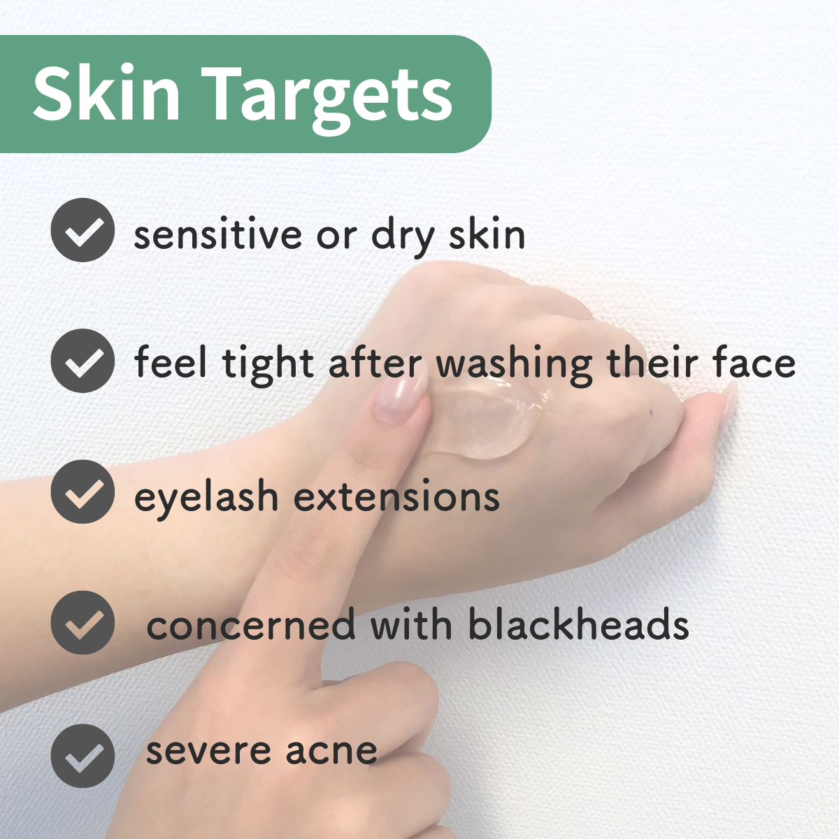 Strong cleansing power to remove makeup, dirt, and excessive oil while retaining enough sebum as a necessary component of healthy and well-hydrated skin.